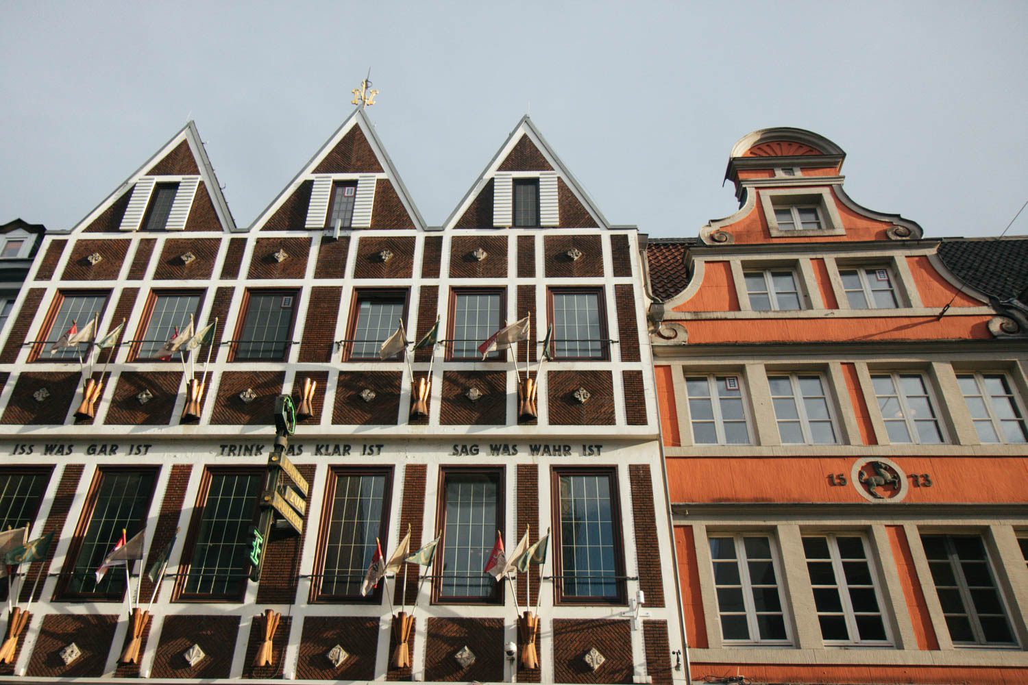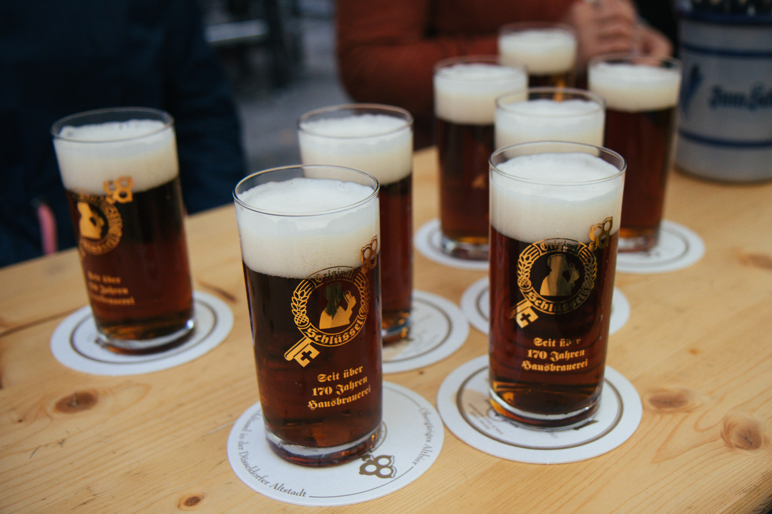 Am späten Nachmittag mache ich mich auf dem Weg zum Burgplatz. Es geht nämlich auf Safari! Und auch wenn es im Düsseldorfer Zoo ein paar wilde Tiere gibt, brauche ich bei dieser Safari kein Fernglas, sondern Durst. Düsseldorf ist berühmt für sein obergäriges Altbier und natürlich gibt es in der Stadt nicht nur eine Brauerei. Es gibt sogar so viele Bars und Kneipen, dass die Düsseldorfer Altstadt auch gerne die längste Theke der Welt genannt wird. Wir beginnen unsere Altbier Safari auf der „Retematäng“, wie die Düsseldorfer ihre Ausgeh-Meile nennen. Der Name stammt noch aus Napoleons Zeiten, der die Ratinger Straße einst in „Rue du Martin“ umbenannt hatte. Ich lerne was über Bitterstoffe, Gärungsart und Altbiertradition und die Stimmung wird mit jedem Brauhaus fröhlicher. Die Tour endet im Urige, eines der ältesten Brauhäuser Düsseldorfs, wo ich gleich zum Abendessen bleibe.